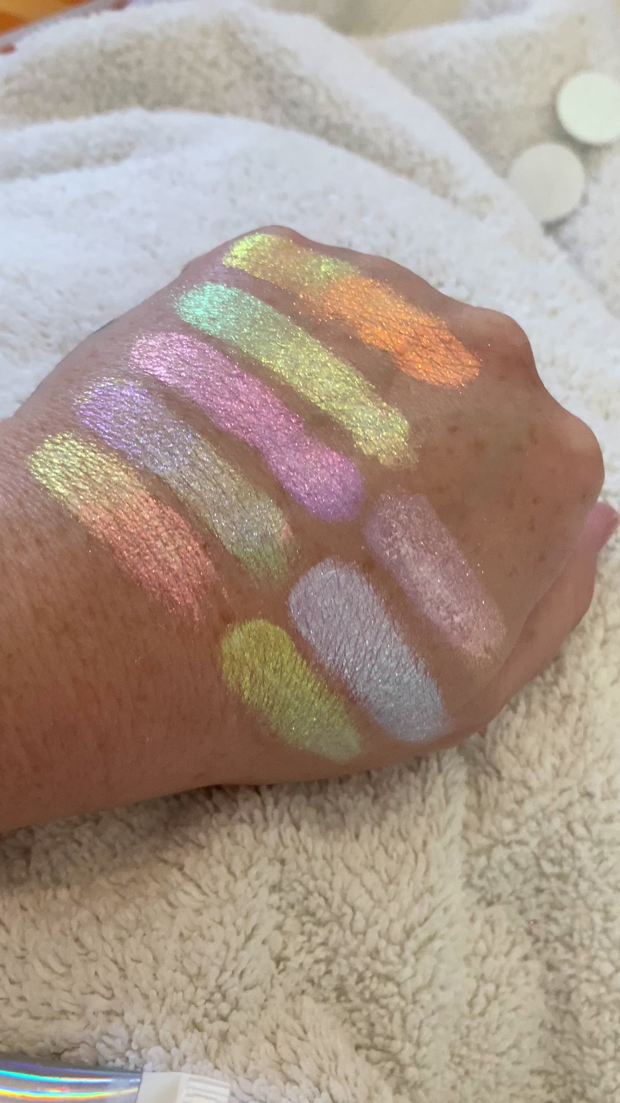opal iridescent multichrome eyeshadow. white base, highlighter eye makeup, rainbow colour shifts